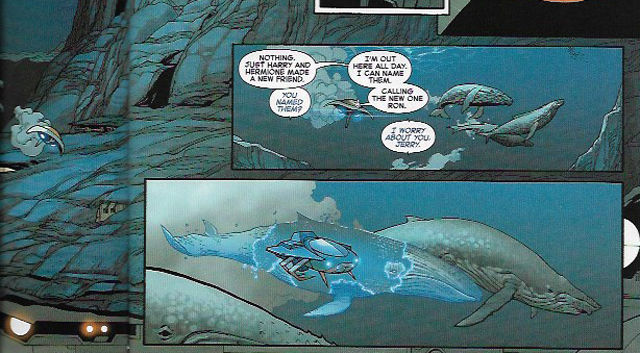 Older readers will remember the episode of “Happy Days” where Fonzi “jumped the shark” in his famous leather jacket while waterskiing. Years from now, perhaps some fans of The Amazing Spider-Man will trace back Peter Parker’s character derailment to the time he started using “holographic whales” on missions to take on global terrorist organizations.