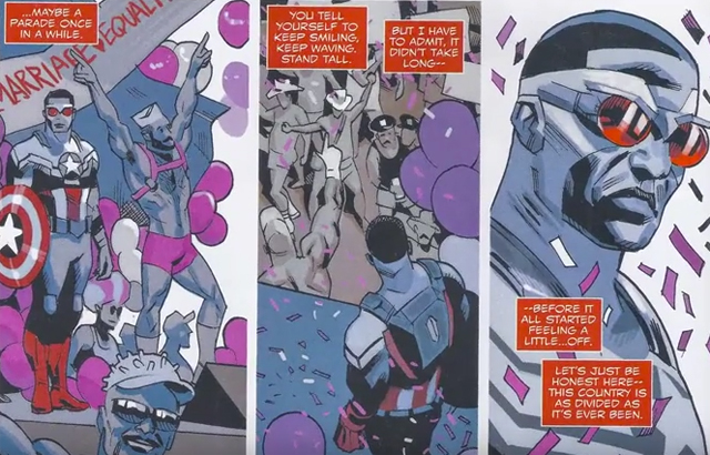 When Captain America isn’t on stage at a gay pride parade, he now fights silly depictions of conservative Americans. A similar thing happened in 2010 when Steve Rogers took on … the Tea Party.